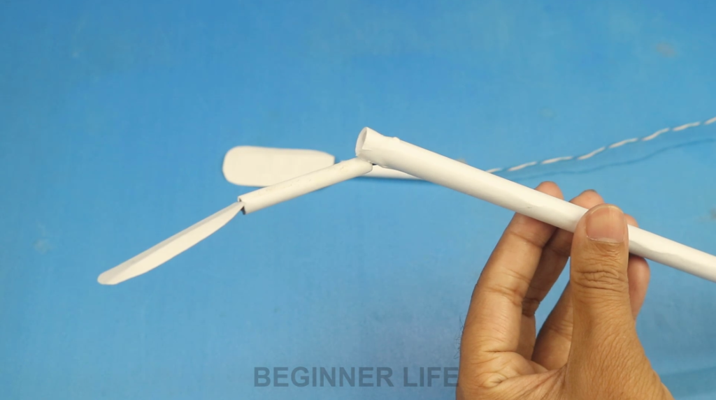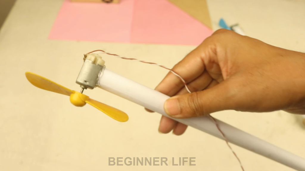 2. Then connect the paper roll with the motor and propeller.