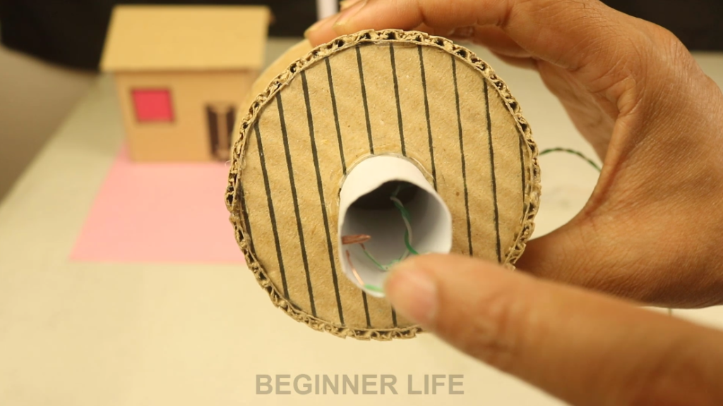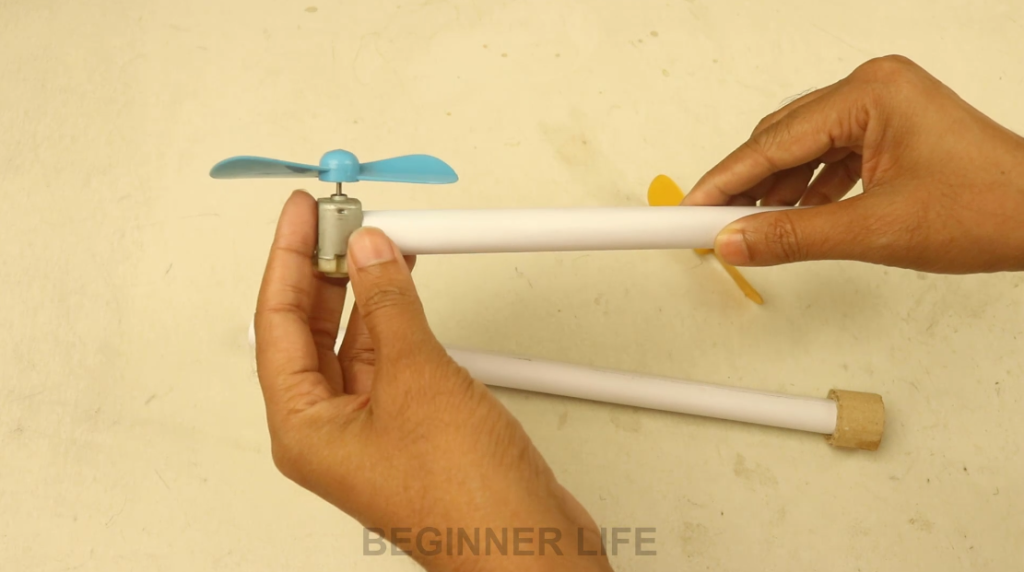 2. Then connect the paper roll with the motor and propeller.