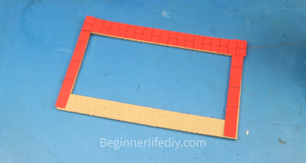 First, arrange the cardboard’s. Then, apply red paper glue to them as needed.