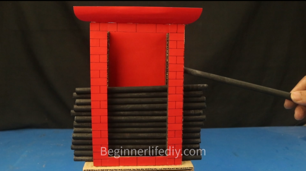 Then wrap it with cardboard like this and make two pillars.